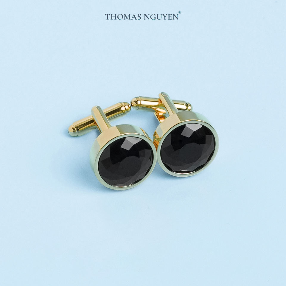 กระดุมข้อมือชุบทอง 18K ประดับอัญมณีเมทีโอไรต์สีดำทรงเหลี่ยมหรูหรา - อัญมณีเสริมฮวงจุ้ยสำหรับผู้ชาย | MSDADEG005 | คอลเลกชันตินวู | เวียดนาม
