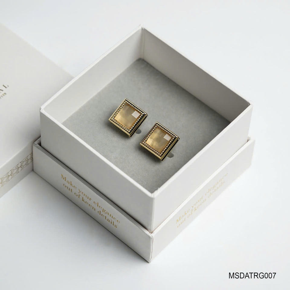 กระดุมข้อมือหินอาเกตสีขาวทรงเหลี่ยมหรูหรา ชุบทอง 18K - อัญมณีเสริมฮวงจุ้ยสำหรับผู้ชาย | MSDATRG007 | คอลเลกชันตินวู | เวียดนาม