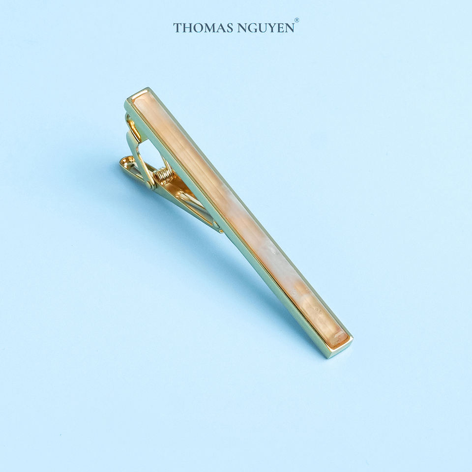 คลิปหนีบเนคไททรงเหลี่ยมหรูหราประดับด้วยอาเกตสีขาวชุบทอง 18K สำหรับผู้ชาย - อัญมณีเสริมฮวงจุ้ยสำหรับผู้ชาย | KCVDATRG003 | คอลเลกชันตินวู