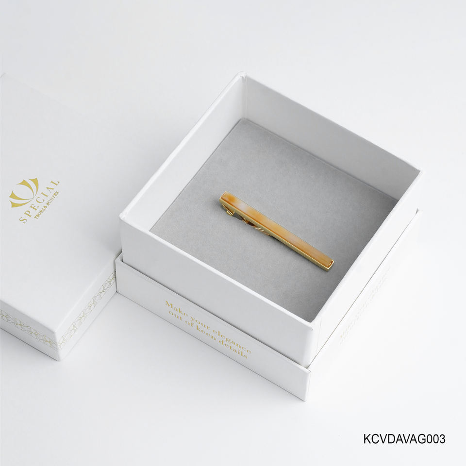 คลิปหนีบเนคไททองคำ 18K ประดับด้วยอาเกตสีเหลืองทรงเหลี่ยมหรูหราสำหรับผู้ชาย - อัญมณีเสริมฮวงจุ้ยสำหรับผู้ชาย | เคซีวีดีวาแก็ก003 | คอลเลกชันตินวู