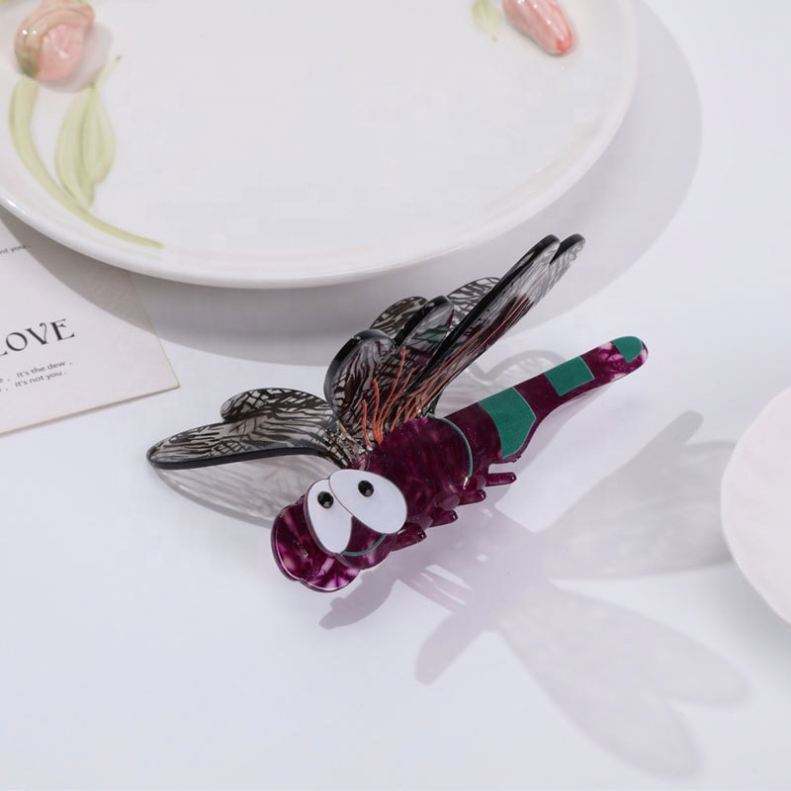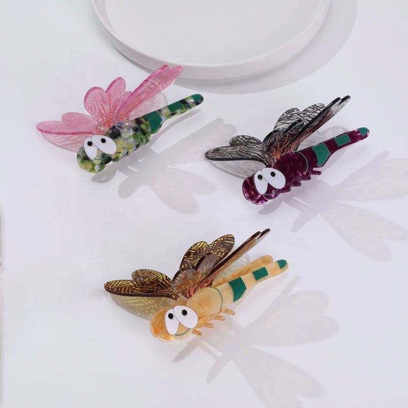 Luxury Fancy Design Dragonfly Hairpin Shark Clip Hair Claws Wholesales Animal Cellulose Acetate Hair Clip for Women