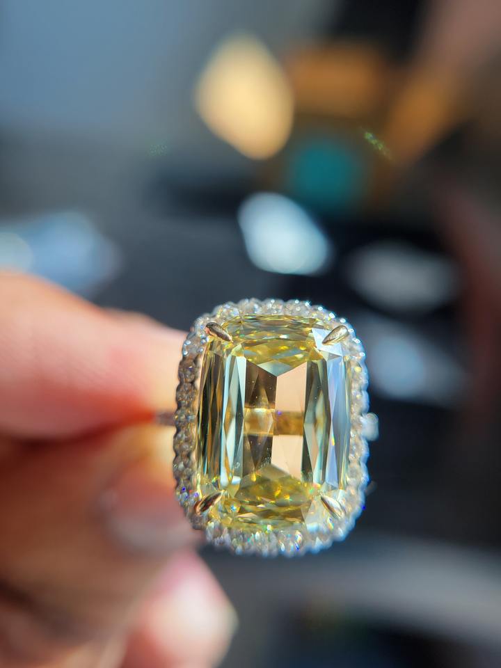แหวนหมั้นเพชรเหลืองทรงหรูหราประดับเพชรแล็บโกรว์ 9K ทองเหลือง/ทองขาว/ทองชมพู ทรงเหลี่ยมมรกต รับรองโดย IGI ชุบโรเดียม