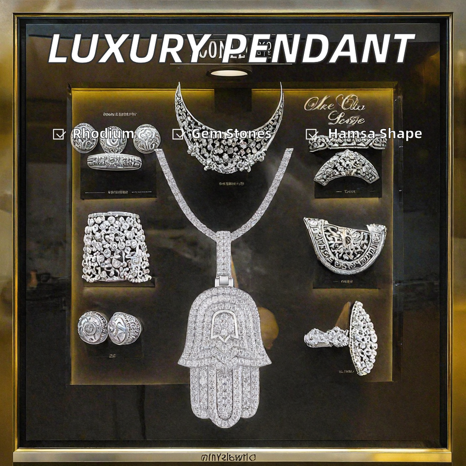 จี้รูปมือฮัมซาประดับเพชรโมอิสซาไนต์ VVS1 ชุบทอง 14K สไตล์แฟชั่นหรูหรา ยอดนิยมในหมู่แร็ปเปอร์ฮิปฮอป จัดส่งจากคลังสินค้าอเมริกา วัสดุเงินแท้ S925