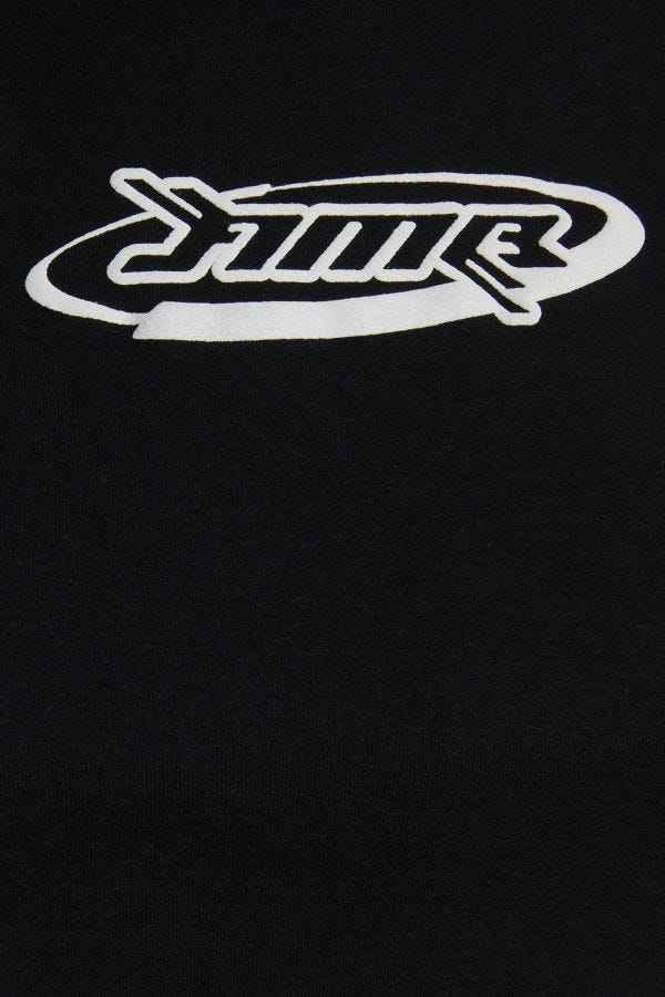 เสื้อกันหนาวผ้าฝ้ายแฟชั่นหรูหราซุ่มโจมตีเสื้อยืดผ้าฝ้ายสีดำมีโลโก้สีขาวตัดกันที่ด้านหน้า
