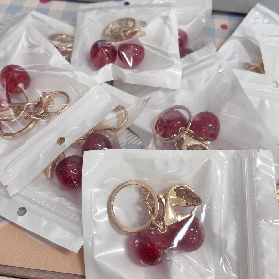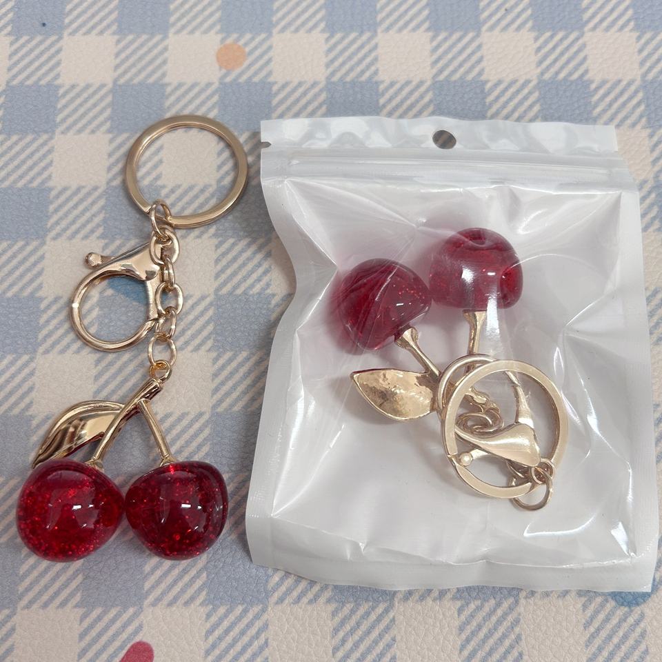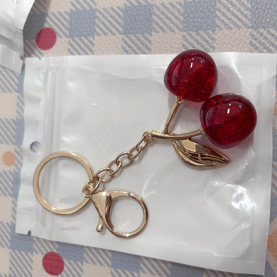 เครื่องประดับกระเป๋าถือคริสตัลสุดหรู จี้รูปเชอร์รี่สำหรับตกแต่งกระเป๋าถือผู้หญิง