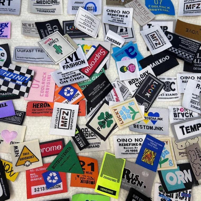 ป้ายผ้าทอขนาดสำหรับเสื้อผ้าแบบพับได้ป้ายโลโก้แบรนด์แบบถักทอหนาแน่นสูงคอแฟชั่นหรูหราออกแบบได้ตามต้องการ