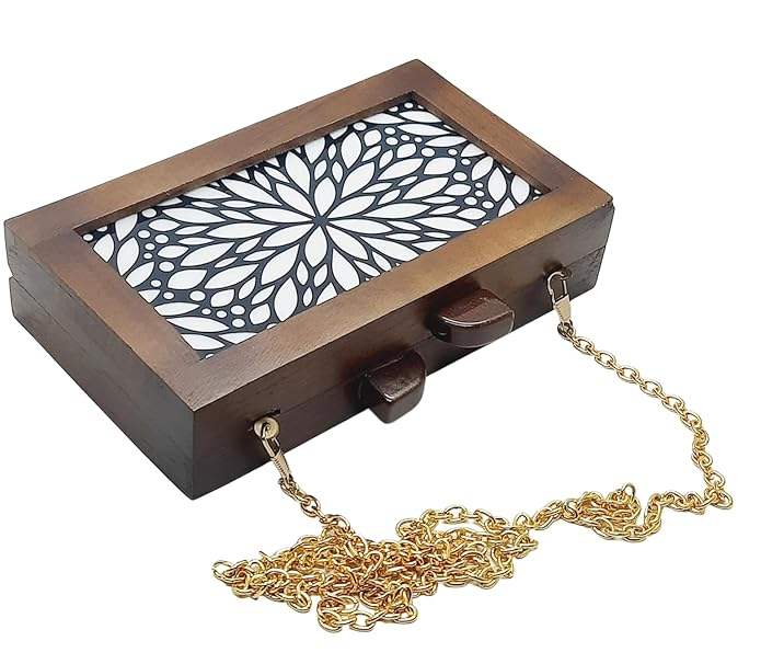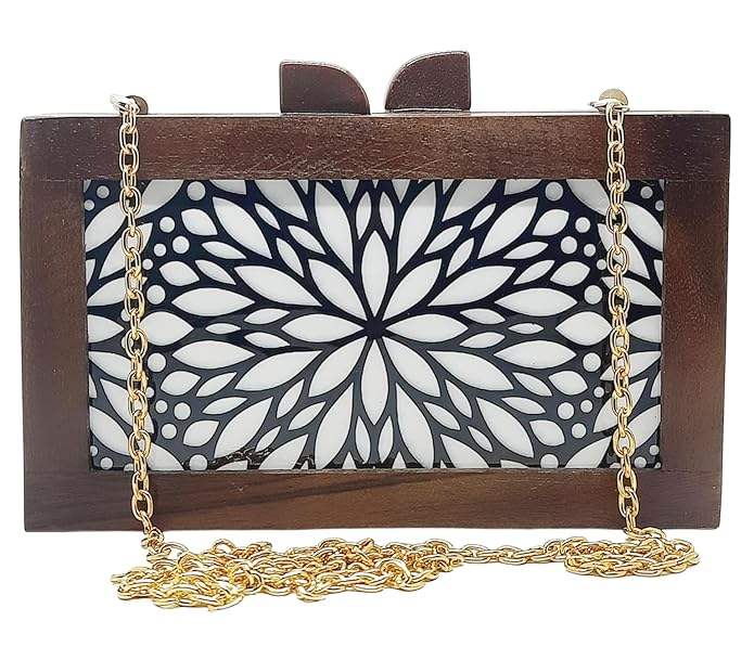 กระเป๋าคลัทช์ไม้แฟชั่นสุดหรูพร้อมกระเป๋าถืองานปักสำหรับงานแต่งงานและงานปาร์ตี้