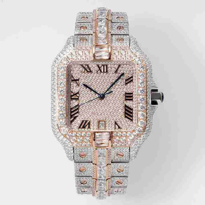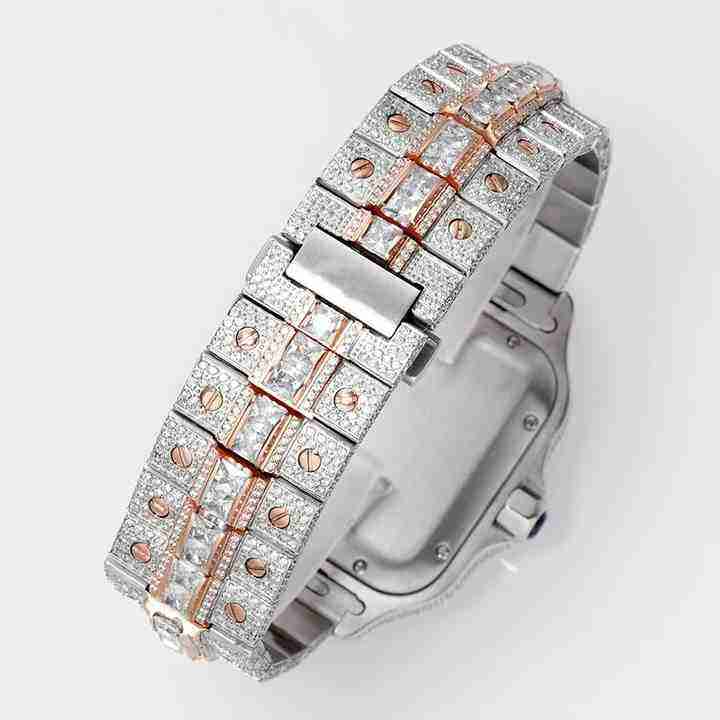 นาฬิกาข้อมือแฟชั่นสุดหรูทำด้วยมือ VVS ชัดเจนนาฬิกาเพชรสำหรับปลูกในห้องปฏิบัติการ