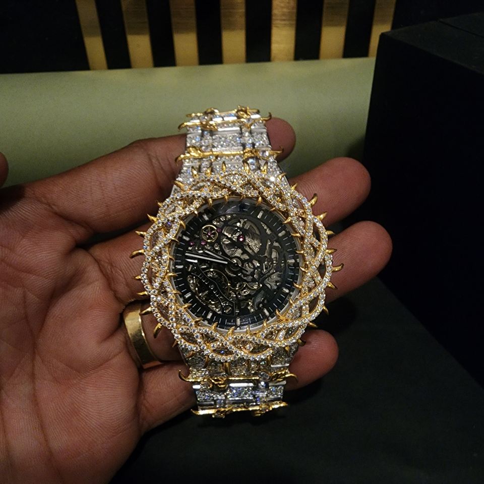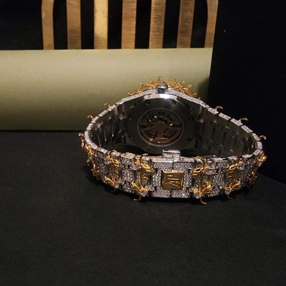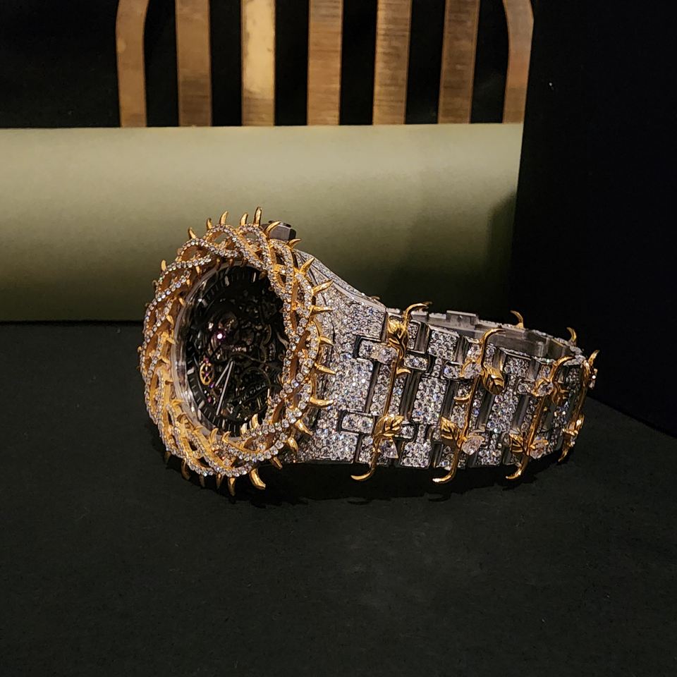 นาฬิกาข้อมือสแตนเลสสตีลหรูหรา หน้าปัดลายโครงกระดูก ประดับเพชรโมอิสซาไนต์ ระบบอนาล็อก กลไก ETA ทนน้ำ 3BAR