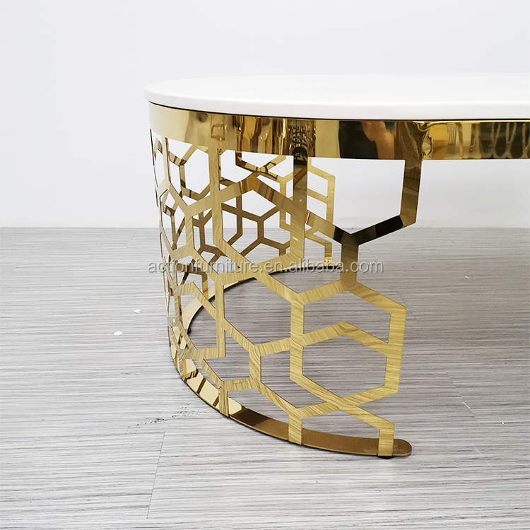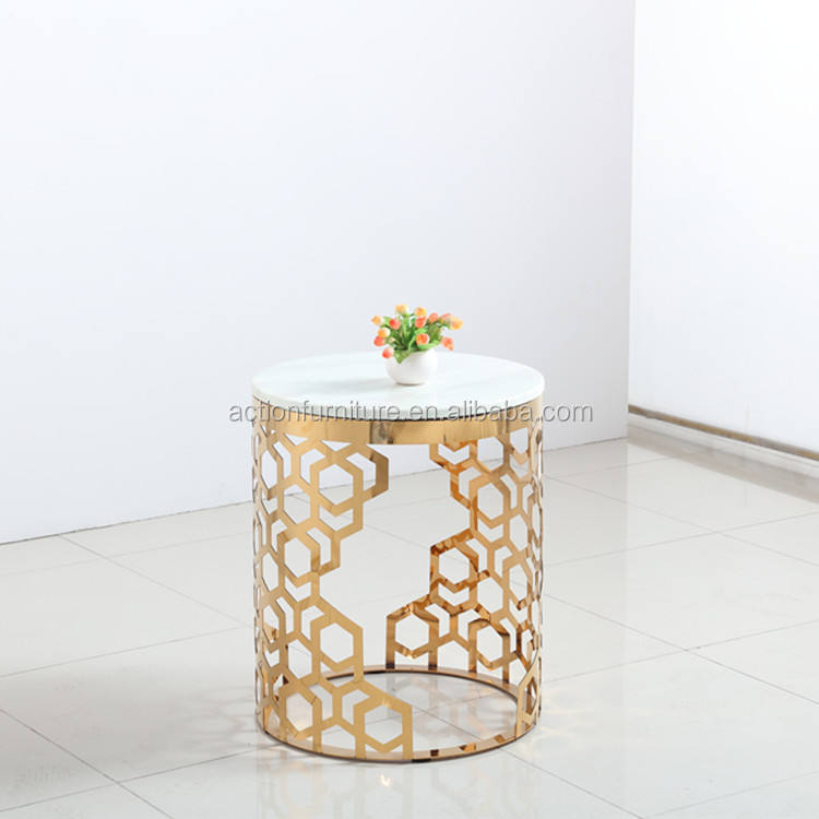 โต๊ะสแตนเลสทรงกลมทันสมัยหรูหราข้างขาโต๊ะโต๊ะหินอ่อนโต๊ะข้างสำหรับร้านกาแฟห้องนั่งเล่นตรงกลาง
