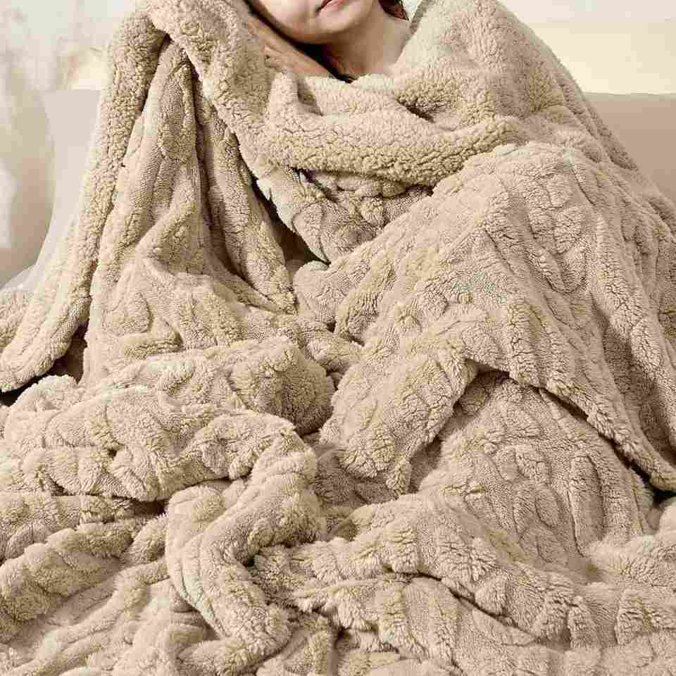 ผ้าห่มขนกระต่ายเทียมแบบหรูหราขนาดควีนไซส์ผ้า510GSM แจ็คการ์ดเชอร์ปา3D อบอุ่นผ้าห่มเตียงหนานุ่มสำหรับฤดูหนาว