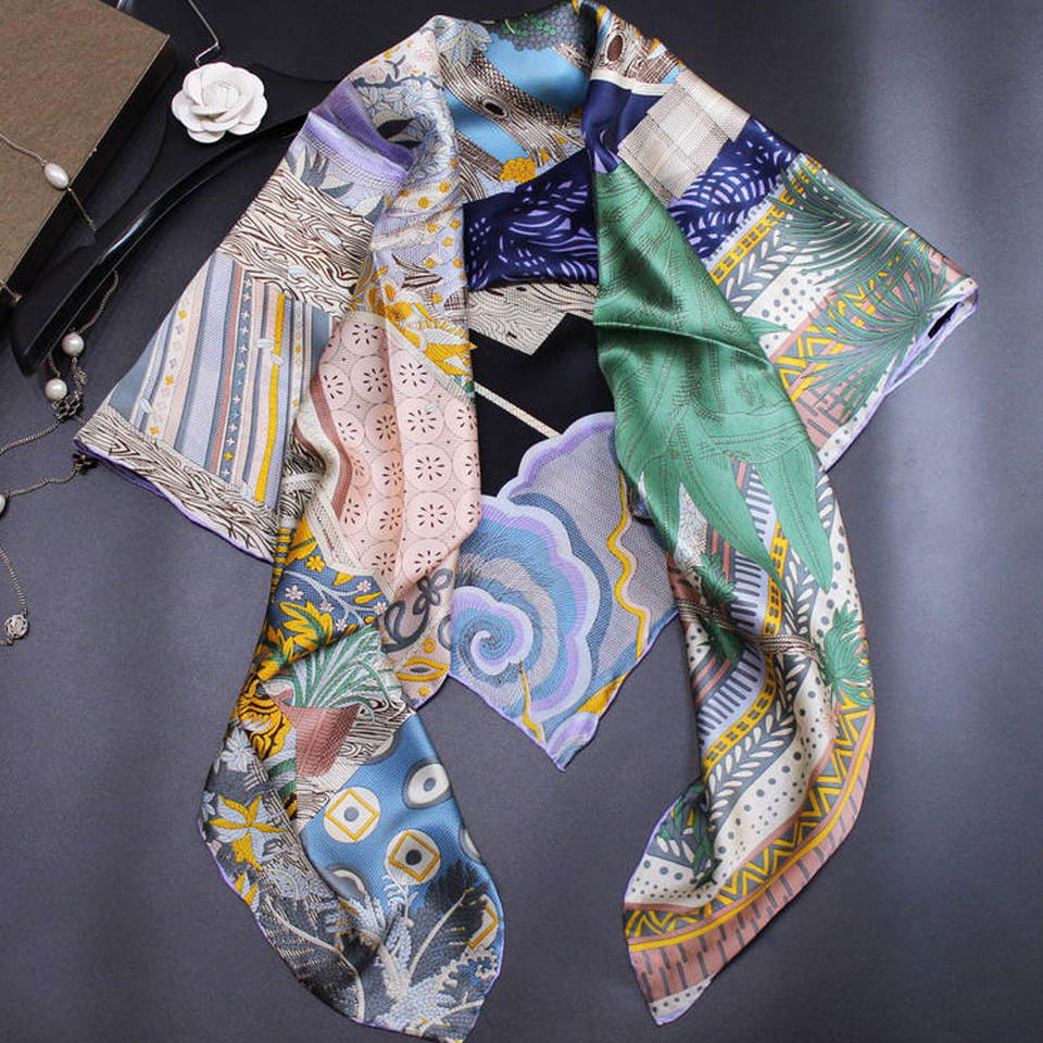 ผ้าพันผมไหมสัมผัสนุ่มหรูหราสำหรับผู้หญิง ผ้าคลุมไหล่ไหมพิมพ์ลายสวยงามสำหรับผู้หญิง ผ้าพันคอไหมทันสมัยสำหรับผู้หญิงสำหรับใช้ในชีวิตประจำวัน