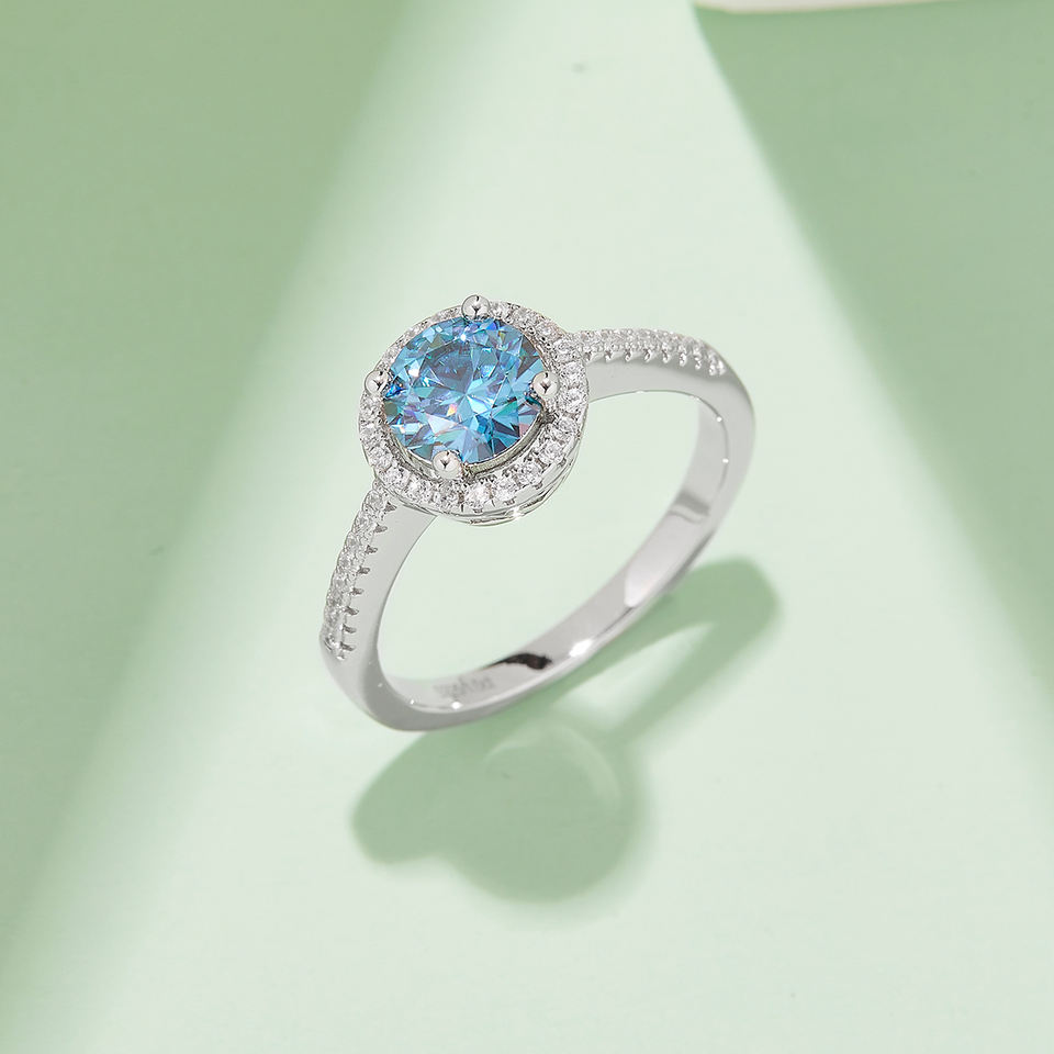 Luxury Female Moissanite Ring 1 Karat D Round Bag S925 Silver Plated with Platinum Straight Arm-with Luxury Diamond