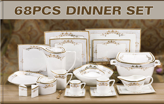 ชุดอาหารค่ำสุดหรูลายกระดูกจีนชุดอาหารเย็นเครื่องเคลือบดินเผาสำหรับตลาดอียิปต์ชุดอาหารเย็น68ชิ้นสำหรับ6ท่าน