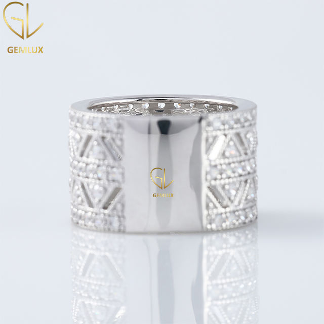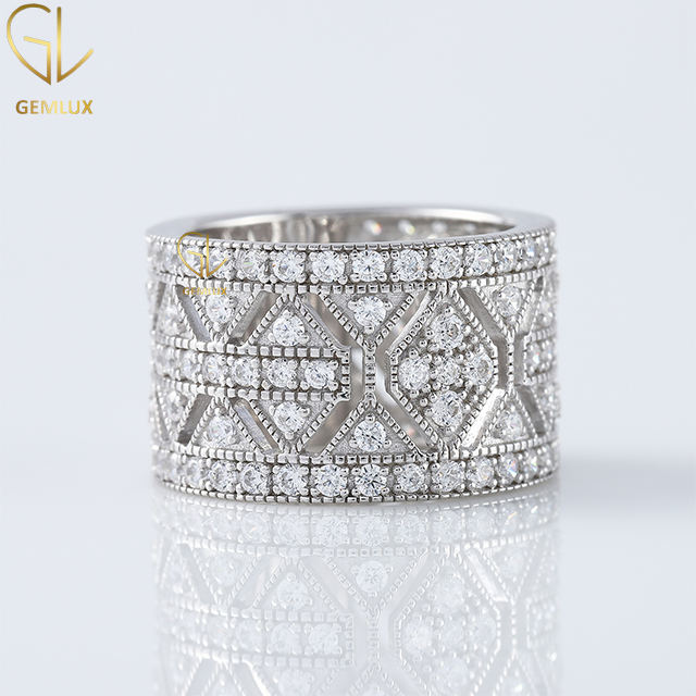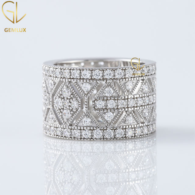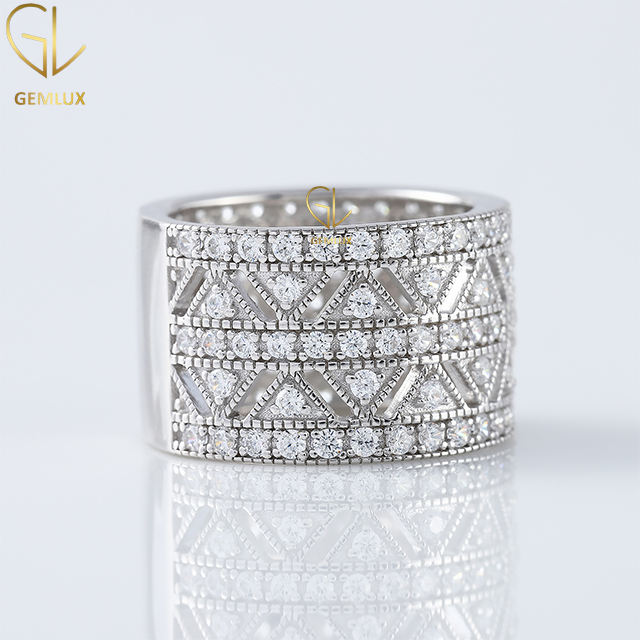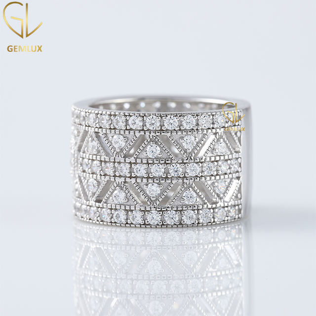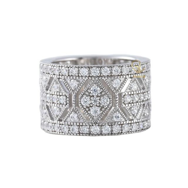 เครื่องประดับสุดหรูแหวนสตรีแบบกว้างลายเพชรเม็ดเล็กทรงกลมแบบทันสมัยสำหรับผู้หญิง