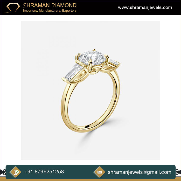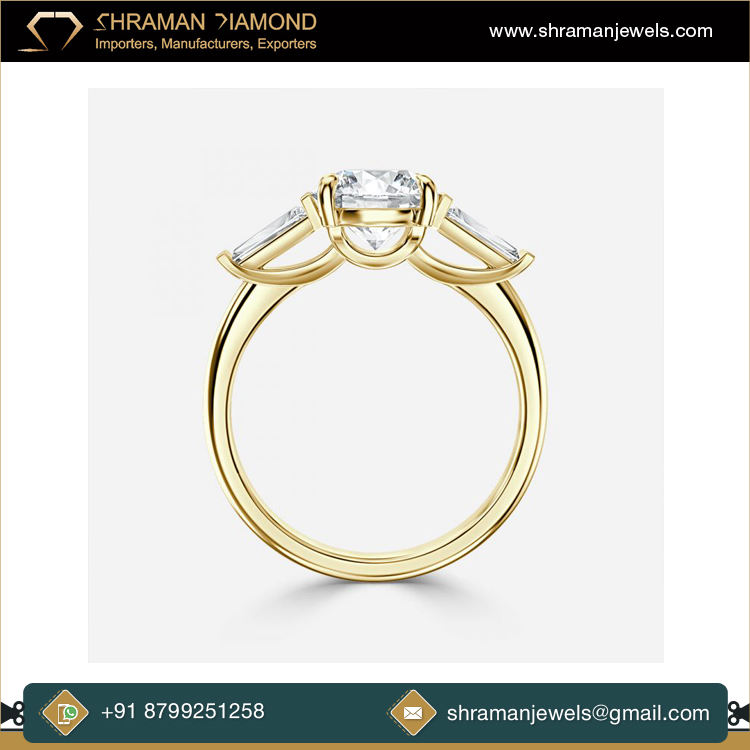 แหวนทองคำแท้ 14K ดีไซน์คลาสสิกทันสมัย ประดับเพชรโมอิสซาไนต์สามเม็ด สำหรับงานหมั้น งานแต่งงาน ของขวัญ งานเลี้ยง หรือเป็นแหวนแทนคำมั่นสัญญา สำหรับผู้หญิง