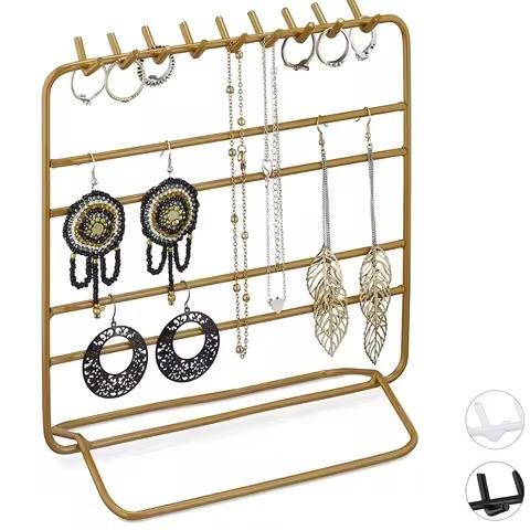 ที่วางเครื่องประดับโลหะแบบหรูหรา สำหรับจัดเก็บสร้อยคอ ต่างหู และกำไลข้อมือ