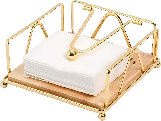 ที่ใส่กระดาษเช็ดปากฐานแบนทำจากไม้แบบเรียบมีที่ใส่สีทองพร้อมบรรจุภัณฑ์สำหรับโต๊ะอาหาร