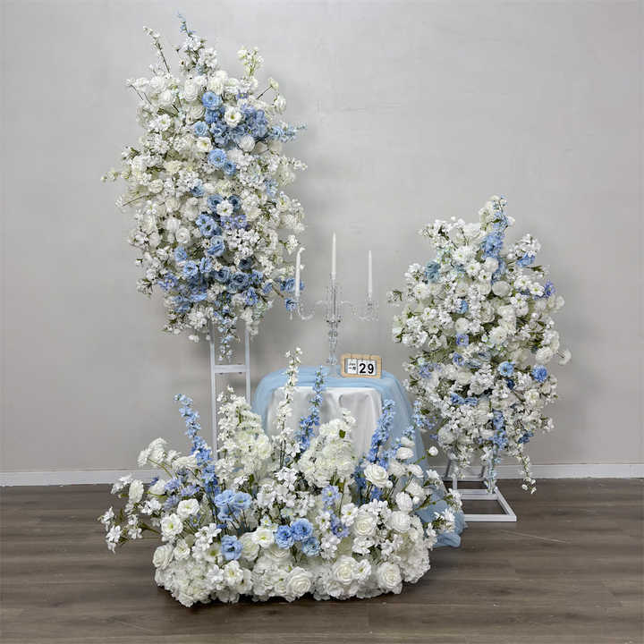 ฉากหลังดอกไม้ประดิษฐ์จากผ้าไหมอย่างดี หรูหรา ตั้งพื้นได้ เหมาะสำหรับงานแต่งงาน งานอีเว้นท์ และงานปาร์ตี้