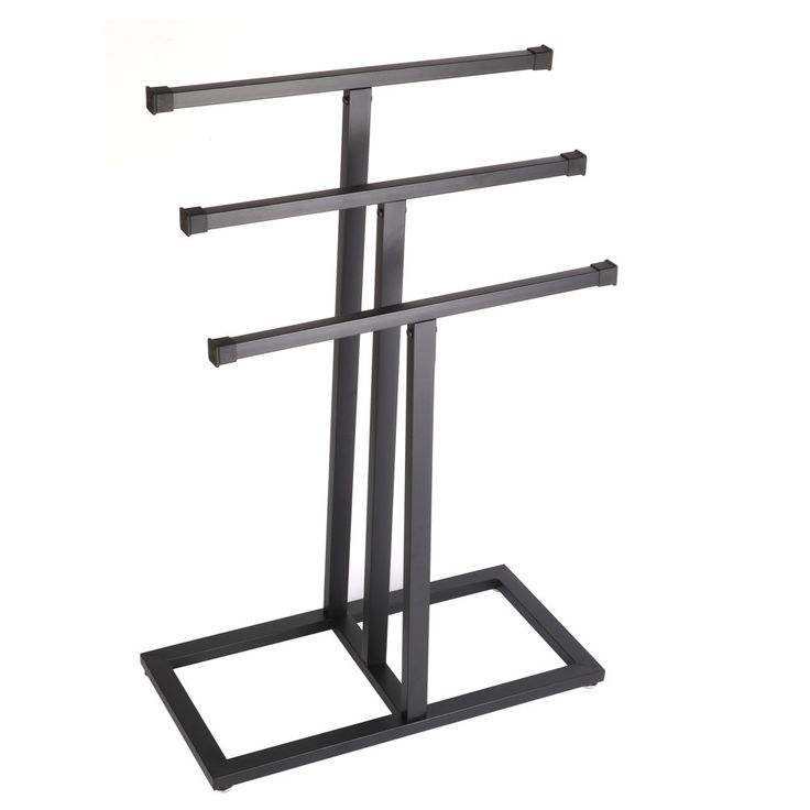 ราวแขวนผ้าขนหนูหรูหราแบบตั้งพื้น ขายส่ง OEM สำหรับห้องน้ำ 2 ชั้น วัสดุโลหะสีดำเคลือบด้วยผง