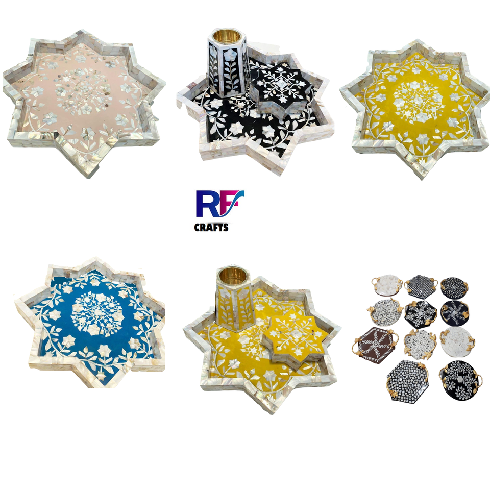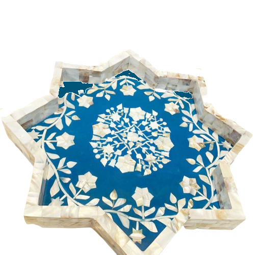 ถาดเสิร์ฟอาหารฝังกระดูกลายดอกไม้หรูหราพร้อมแม่มุกสำหรับร้านอาหารและโรงแรมถาดเสิร์ฟจากอินเดีย