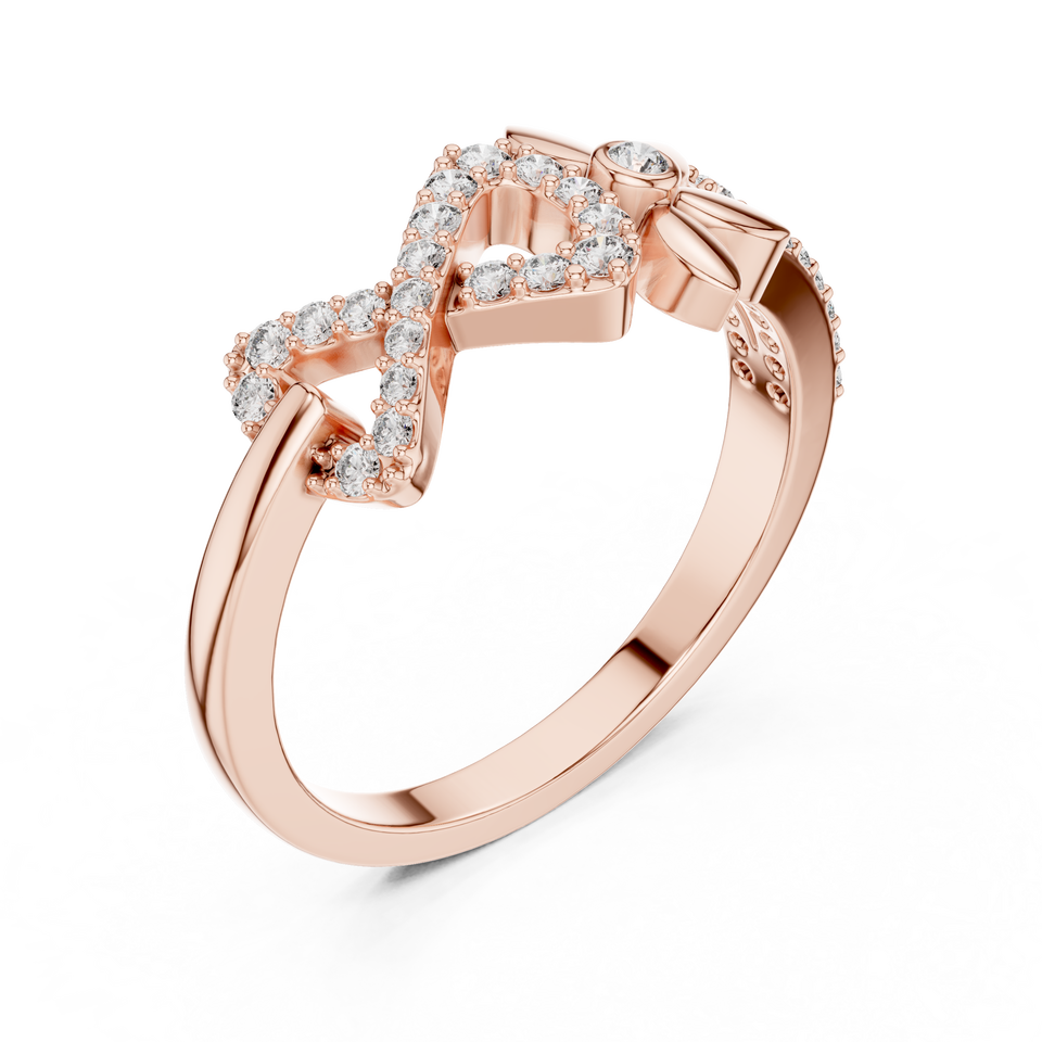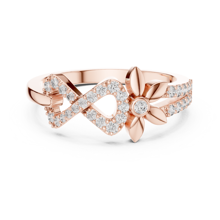แหวนเพชรทรงอินฟินิตี้ลายดอกไม้สุดหรูสำหรับผู้หญิง | ลายดอกไม้สีโรสโกลด์ | การฝังเพชรแบบไมโครเพฟ | แหวนมอสซาไนต์