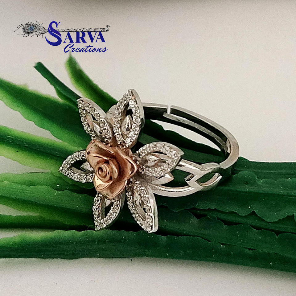 แหวนมอสซาไนต์ลายดอกไม้หรูหราสำหรับผู้หญิง เงินแท้ 925 ชุบทองคำสีกุหลาบ ดีไซน์ดอกไม้ แหวนดีไซน์โดดเด่น