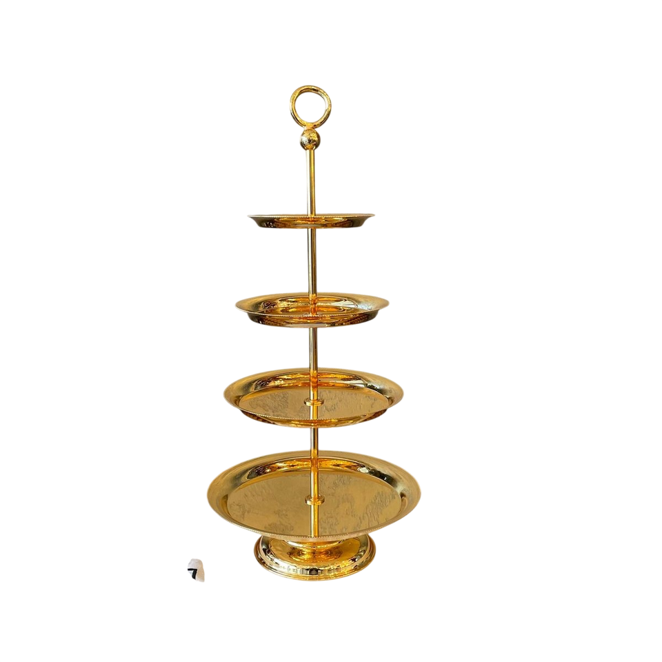 ขาตั้งเสิร์ฟทองเหลืองลายดอกไม้หรูหราสำหรับผลไม้ เค้ก ขนมหวาน และของตกแต่งโต๊ะกลางบ้าน โรงแรม ร้านอาหาร