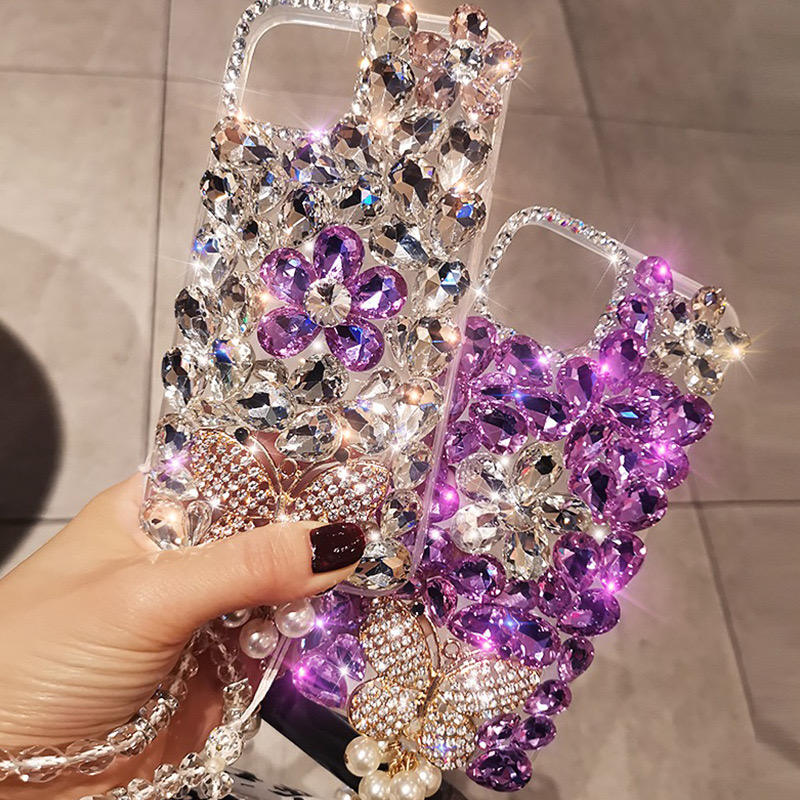 หรูหราดอกไม้เพชรGlitter Blingเคสโทรศัพท์สําหรับiPhone 15 Pro MaxสําหรับiPhone 14 13 12 11 TPU Handmadeเคสโทรศัพท์