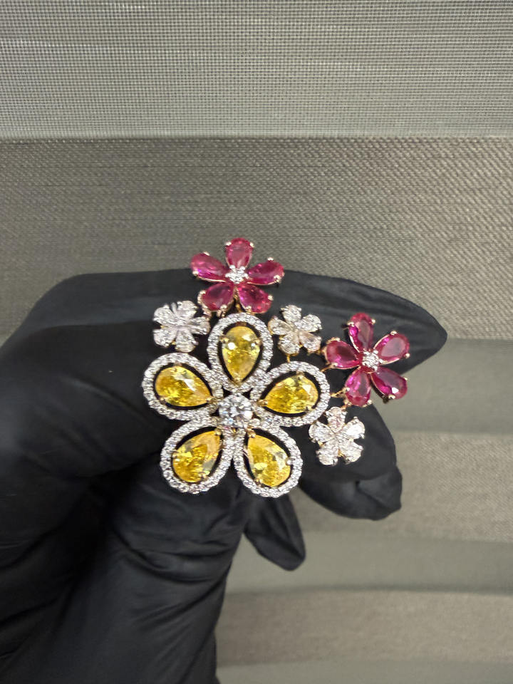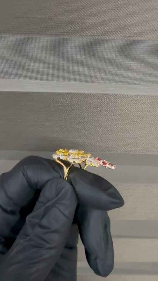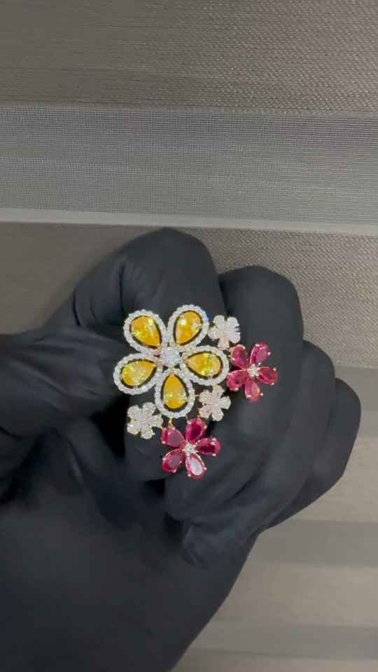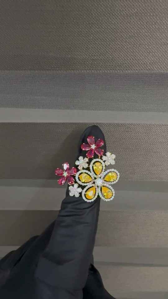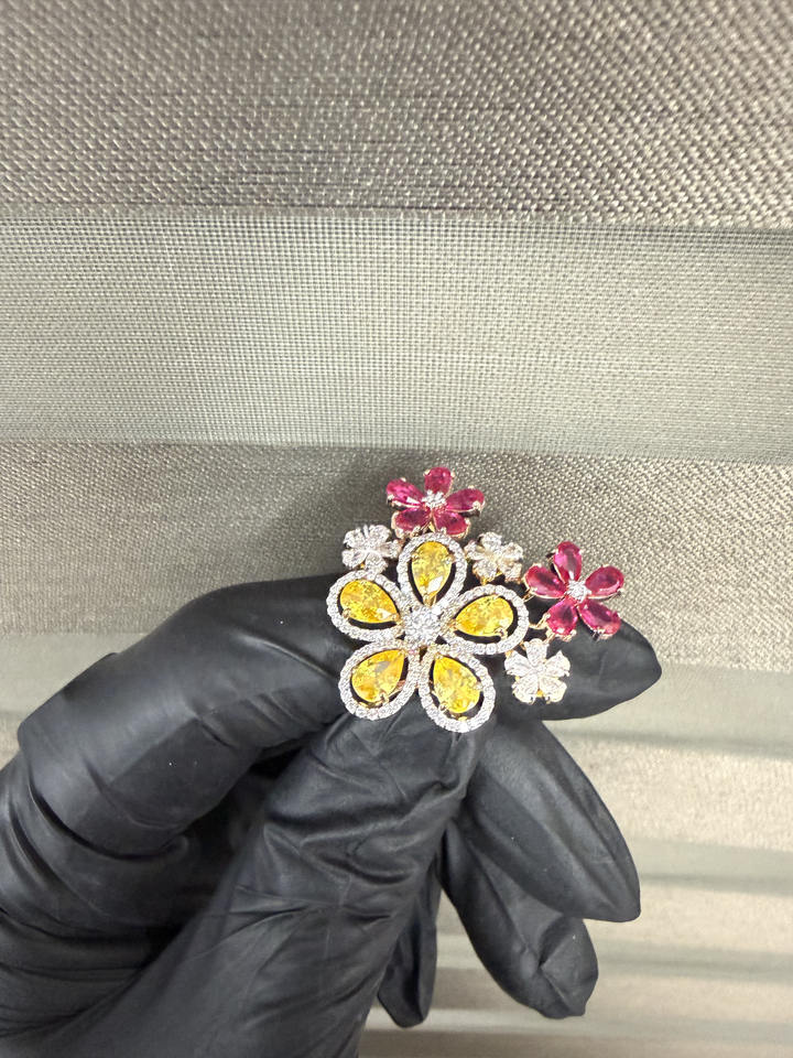 แหวนดอกไม้ประดับเพชรทรงลูกแพร์เพาะเลี้ยงในห้องปฏิบัติการหรูหรา ได้รับการรับรองจาก IGI ทองคำ 18K ประดับไพลินสีเหลือง สำหรับผู้หญิง เครื่องประดับชั้นดีสั่งทำพิเศษ