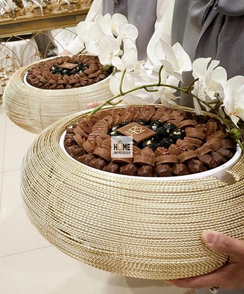 ชามช็อกโกแลตอะลูมิเนียมแบบใช้แล้วทิ้งสุดหรูทันสมัย พร้อมตกแต่งด้วยสีทอง เป็นมิตรกับสิ่งแวดล้อม ปลอดภัยสำหรับสัมผัสอาหาร