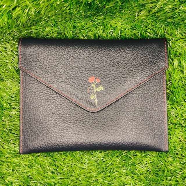 Pebbled Cow Leather Flower Printed Envelope