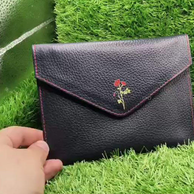 Product name:Pebbled Cow Leather Flower Printed Envelope