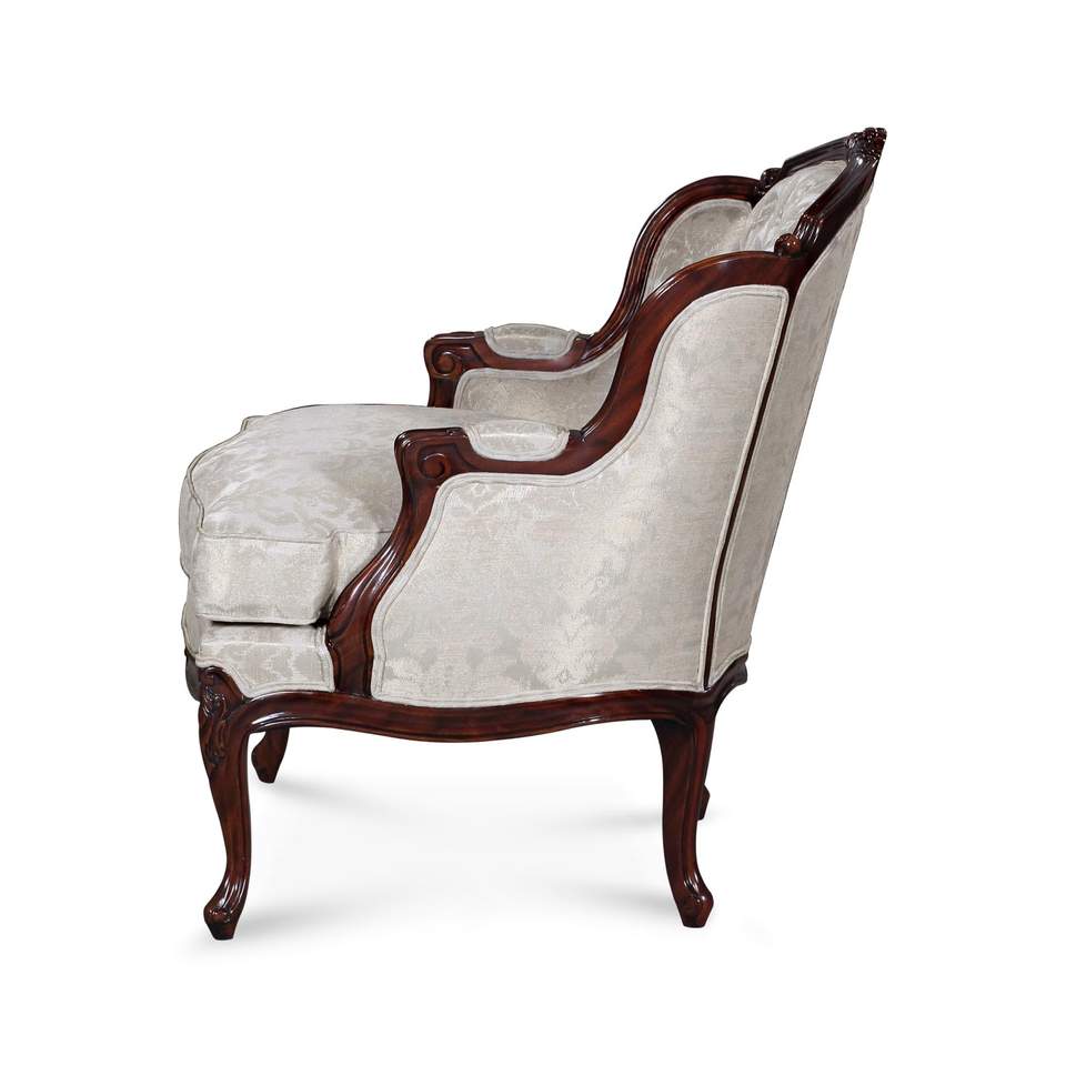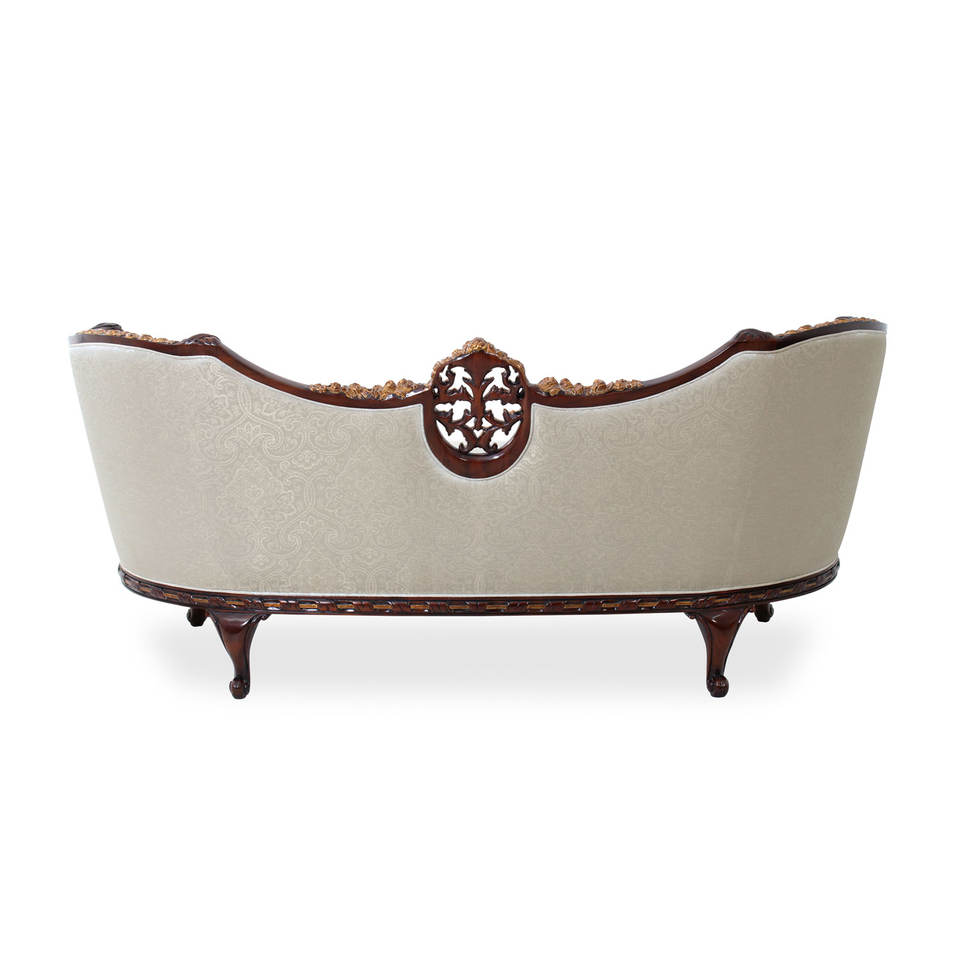โซฟาห้องนั่งเล่นสามที่นั่งสไตล์ฝรั่งเศสสุดหรู โครงไม้สักแท้ หุ้มผ้า ตกแต่งด้วยงานแกะสลักด้วยมือ เหมาะสำหรับใช้ในโรงแรม