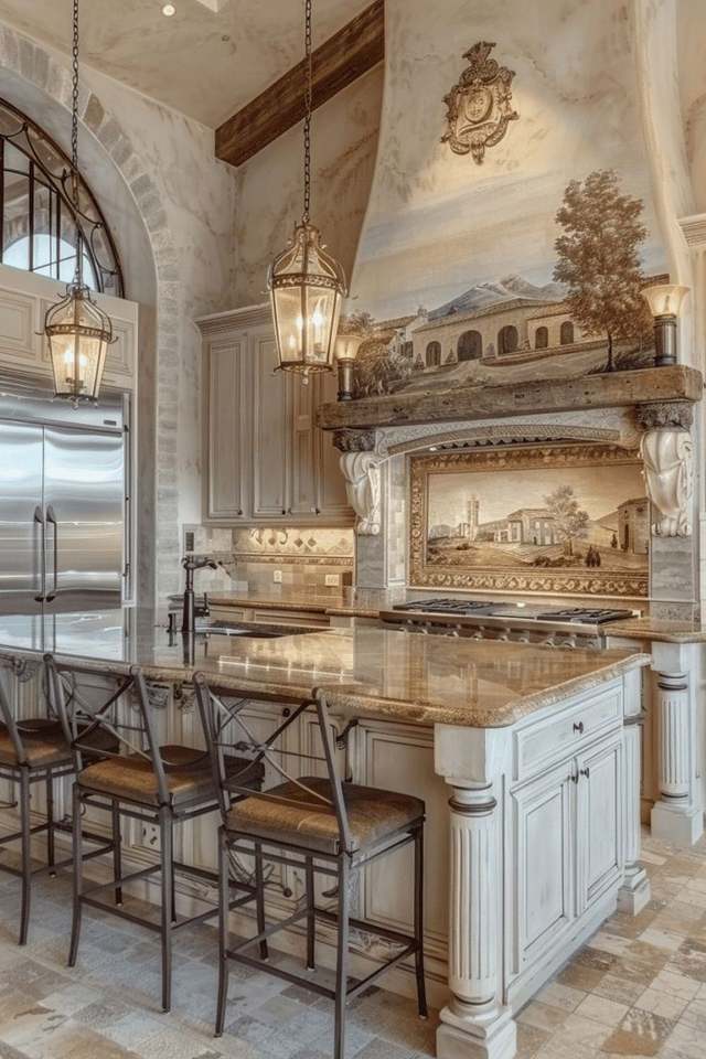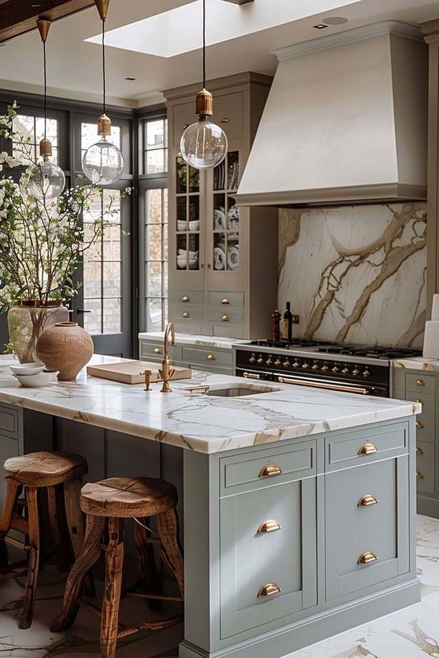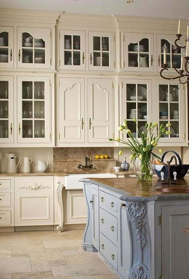 ตู้ครัวแยกส่วนทำจากไม้เนื้อแข็งสไตล์ฝรั่งเศสที่ดูทันสมัยพร้อมเกาะที่น่าดึงดูด