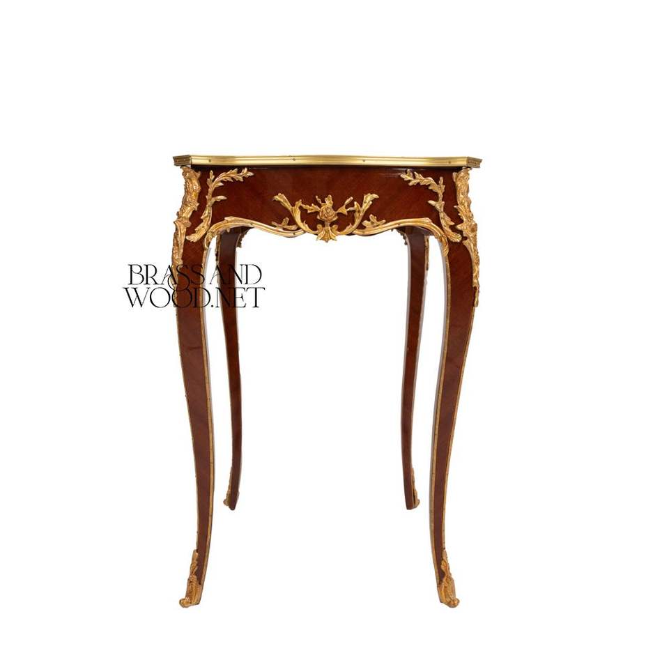 โต๊ะข้างทรงสี่เหลี่ยมสไตล์ฝรั่งเศสหรูหรา พร้อมลายดอกไม้ประณีตฝังมุก และตกแต่งด้วยทองเหลืองสีทองอร่าม สำหรับตกแต่งพระราชวัง