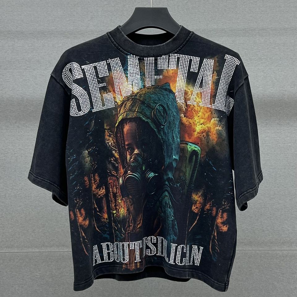 เสื้อยืดเฟรนช์เทอร์รี่เนื้อหนักพิมพ์ลายเพชร ผู้ผลิตเสื้อยืดโอเวอร์ไซส์ทรงหลวมแบบดรอปโชว์เดอร์ ลวดลายกราฟิก