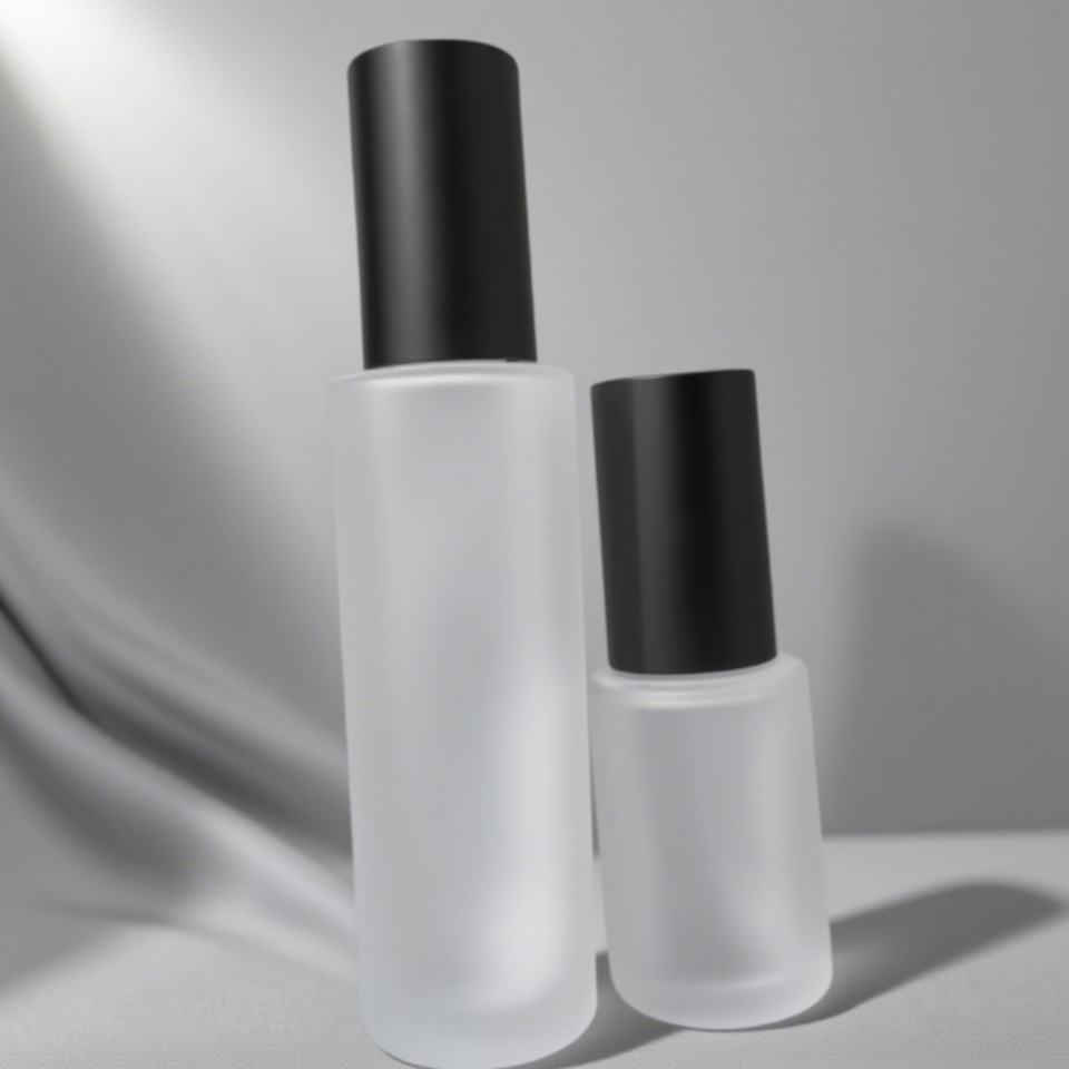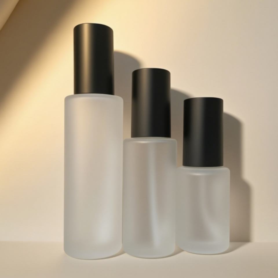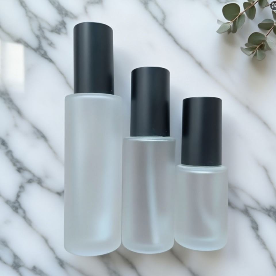 ขวดแก้วปั๊มโลชั่นแบบพ่นฝอยละเอียด สีดำด้านหรูหรา ขนาด 20/30/40/50/60/80/100/120 มล. สำหรับบรรจุภัณฑ์เครื่องสำอางบำรุงผิว