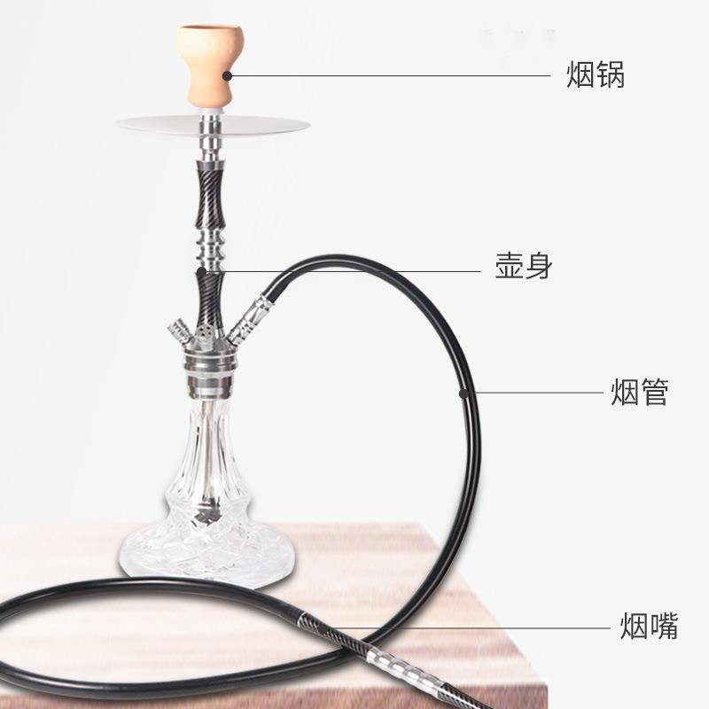ชุดมอระกู่สแตนเลสสีด้านสุดหรูพร้อมดีไซน์แบบอาหรับชุดท่อสูบเดี่ยวแก้วควันขนาดใหญ่สำหรับใช้เป็น KTV