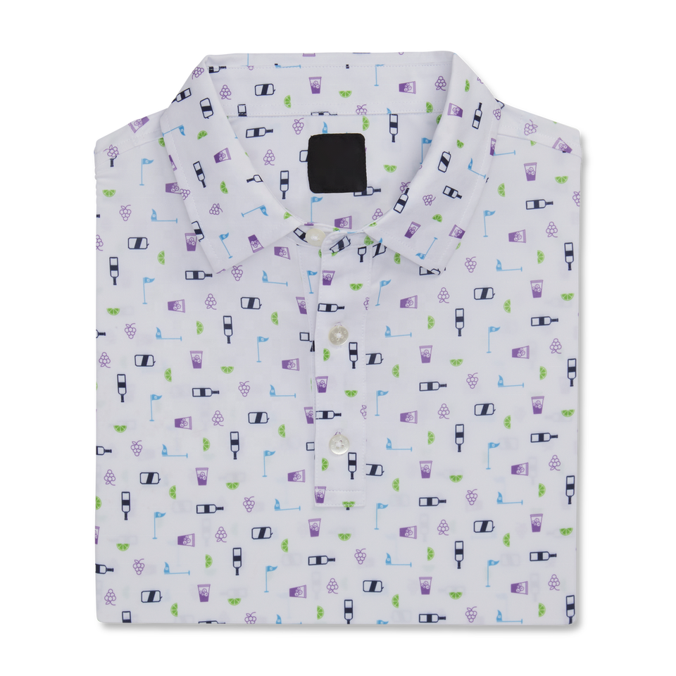 เสื้อโปโลสำหรับผู้ชายเสื้อกอล์ฟผ้าสแปนเด็กซ์ผ้าโพลีเอสเตอร์พิมพ์ลายทั้งตัวหรูหราน้ำหนักเบาออกแบบได้ตามต้องการ