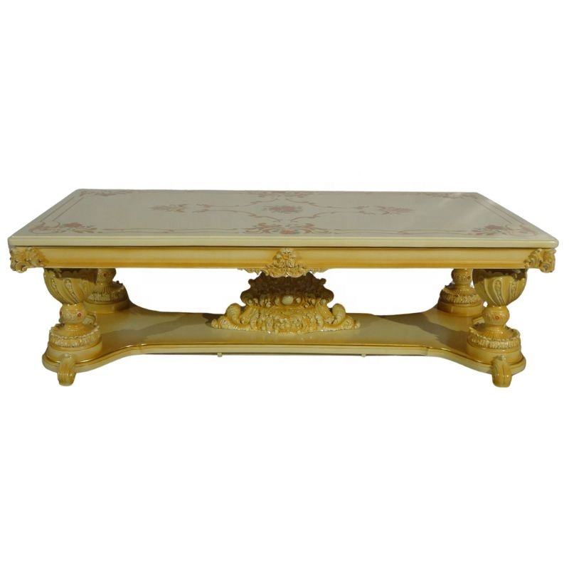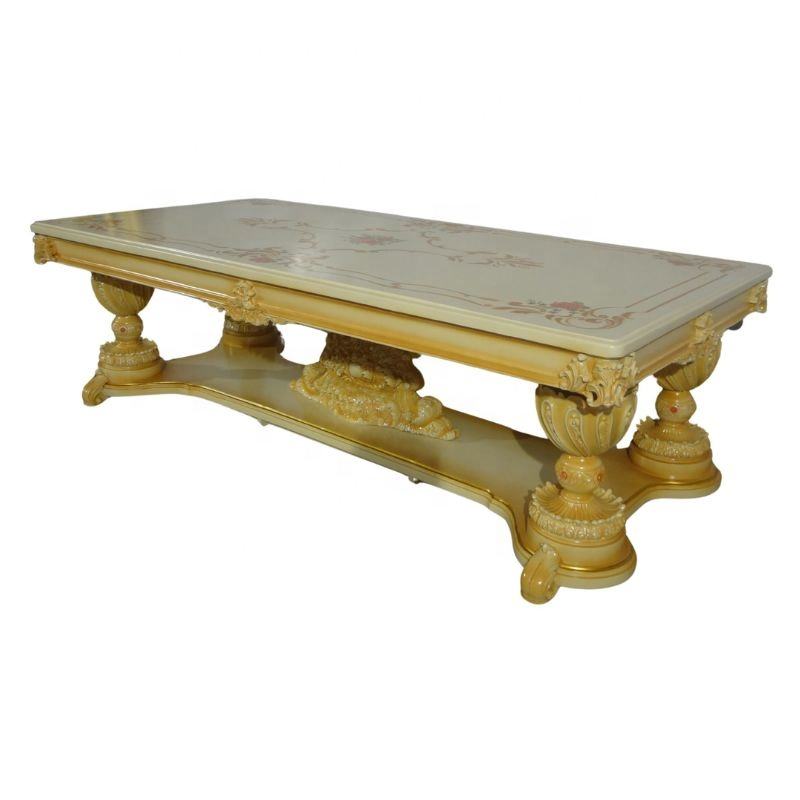 หรูหราเต็มมือแกะสลักโต๊ะรับประทานอาหารและเก้าอี้มือทาสีมะฮอกกานีในร่มพระราชเฟอร์นิเจอร์ห้องรับประทานอาหารคลาสสิก