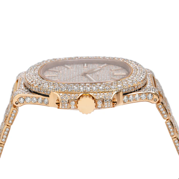 นาฬิกาสุดหรูสีโรสโกลด์พร้อม VVS CVD นาฬิกาเคลื่อนไหวประดับเพชรเรือนระบบควอตซ์สำหรับผู้ชาย