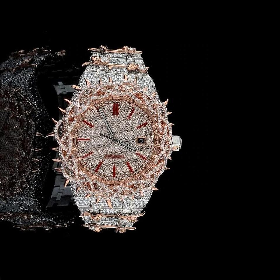 นาฬิกาประดับเพชรแบบเต็ม VVS Moissanite สุดหรูนาฬิกาข้อมือสเตนเลสสตีลดีไซน์หรูหราสไตล์ฮิปฮอปเครื่องประดับ
