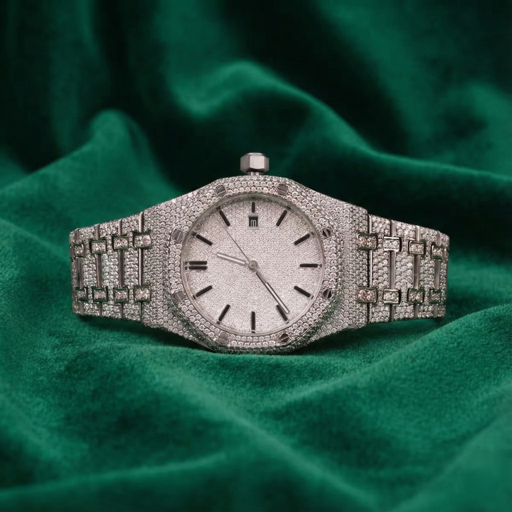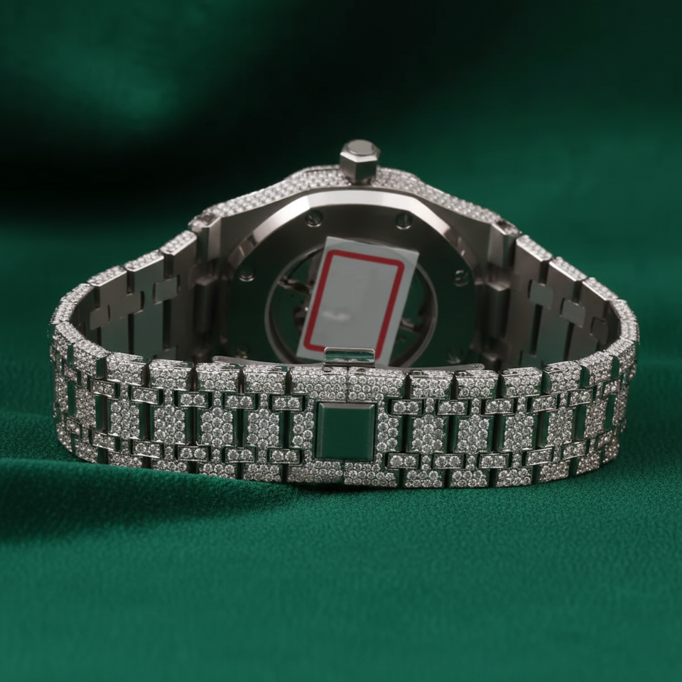 นาฬิกาอัตโนมัติหรูหราประดับเพชรโมอิสซาไนต์เต็มหน้าปัด ตัวเรือนสแตนเลส กระจกแซฟไฟร์ กันน้ำ ดีไซน์เพชร สำหรับผู้ชายและผู้หญิง