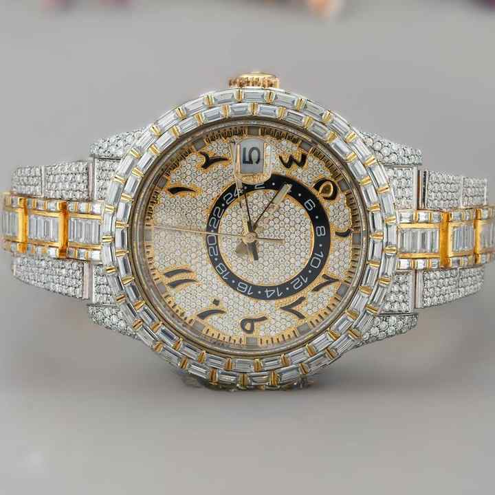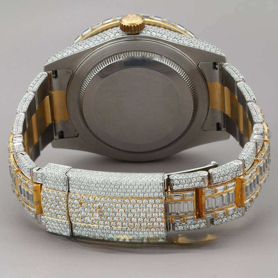 Luxury Fully Iced Out Moissanite Watch 40mm Sapphire Crystal Two Tone Baguette Bezel GMT Hip Hop Diamond Look Stainless Steel