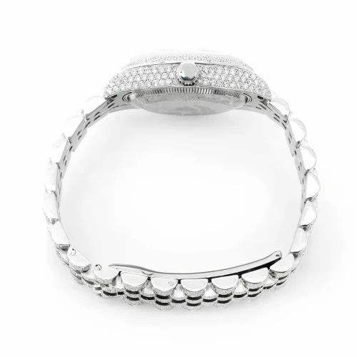 นาฬิกาหรูหราประดับเพชรโมอิสซาไนต์เต็มเรือน หน้าปัดสีฟ้าอ่อน ระบบอัตโนมัติ ตัวเรือนสแตนเลส