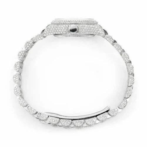 นาฬิกาข้อมือหรูหราประดับเพชรโมอิสซาไนต์เต็มเรือน หน้าปัดสีชมพู ระบบอัตโนมัติ เครื่อง ETA ตัวเรือนสแตนเลสสตีล