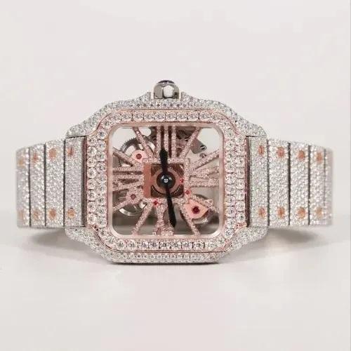 นาฬิกาโมอิสซาไนต์หรูหราประดับเพชรเต็มเรือนสำหรับผู้ชาย | นาฬิกาข้อมือฮิปฮอปสแตนเลสสตีลแบบกำหนดเอง ประดับเพชร พร้อมหน้าปัดแสดงวันที่