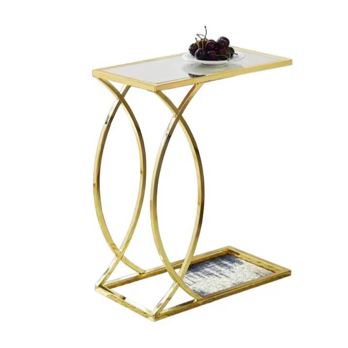 โต๊ะตกแต่งเฟอร์นิเจอร์หรูหราดีไซน์ล่าสุดโต๊ะข้างชุบทองโต๊ะข้างแบบพรีเมียมทำด้วยมือรูปทรงทันสมัย