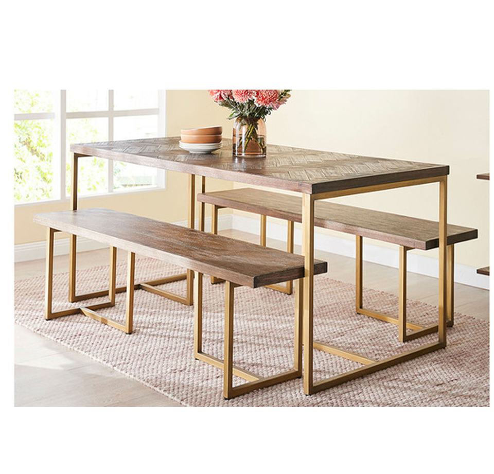 โต๊ะรับประทานอาหารดีไซน์แบบก้างปลาทำจากไม้สีทองขาร้านอาหารและโต๊ะรับประทานอาหารของคาเฟ่เฟอร์นิเจอร์หรูหราสไตล์ทันสมัย